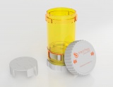 Simplistic in nature and design, the Vexticle allows both pills and capsules of variable sizes to be dispensed with ease. Designed with the user in mind, the unit comes equipped with a cap, vial, disk, and optional rotary nests for capsules and or pills. The pill rotary nest can accommodate both flat and round pills ranging from 8mm-12mm, whereas the capsule rotary nest is capable of dispensing capsules of assorted sizes as well. With a specialized perforated disk made to fit over the rotary nest to operate as its medicine manager, the user can rest assured that they will be receiving a single medicant at a time. As part of this units design, a pill sizer has been implemented in the cap for a more effective user experience when handling meds of varied sizes. The vial’s standard size is 42mm wide x 76mm height and colors may vary depending on availability.
