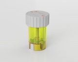Designed to replace our current and ineffective system in pharmacies, the unit comes preset to pharmaceutical needs. This model is currently only suited to dispense pills. The only job of the pharmacist is to fill the prescription and pre-set the indexing disk for pill size. With a semi-permanent cap and touch free experience, the patient is protected from loss or contamination of pills. The cap includes a patented concept whereas the pill size is pre-determined within the cap itself. This gives the pharmacist or user the ability to immediately pre-load the vial according the exact size needed for dispensing. The cap’s pill chambers range from 6mm-12mm making it a useful tool in aiding in medicine administration. The vial has a 40mm width x 76mm height making it very comparable to standard over-the-counter vials issued by pharmacies today. Its unique design also includes perforated cutouts within the vial for the accommodation of different sized pills. The rotary nest itself operates as one unit along with the indexing disk to rotate when the tabs are compressed allowing it to turn left or right to retrieve the medicant. The unit is made of plastic and colors may vary upon availability.